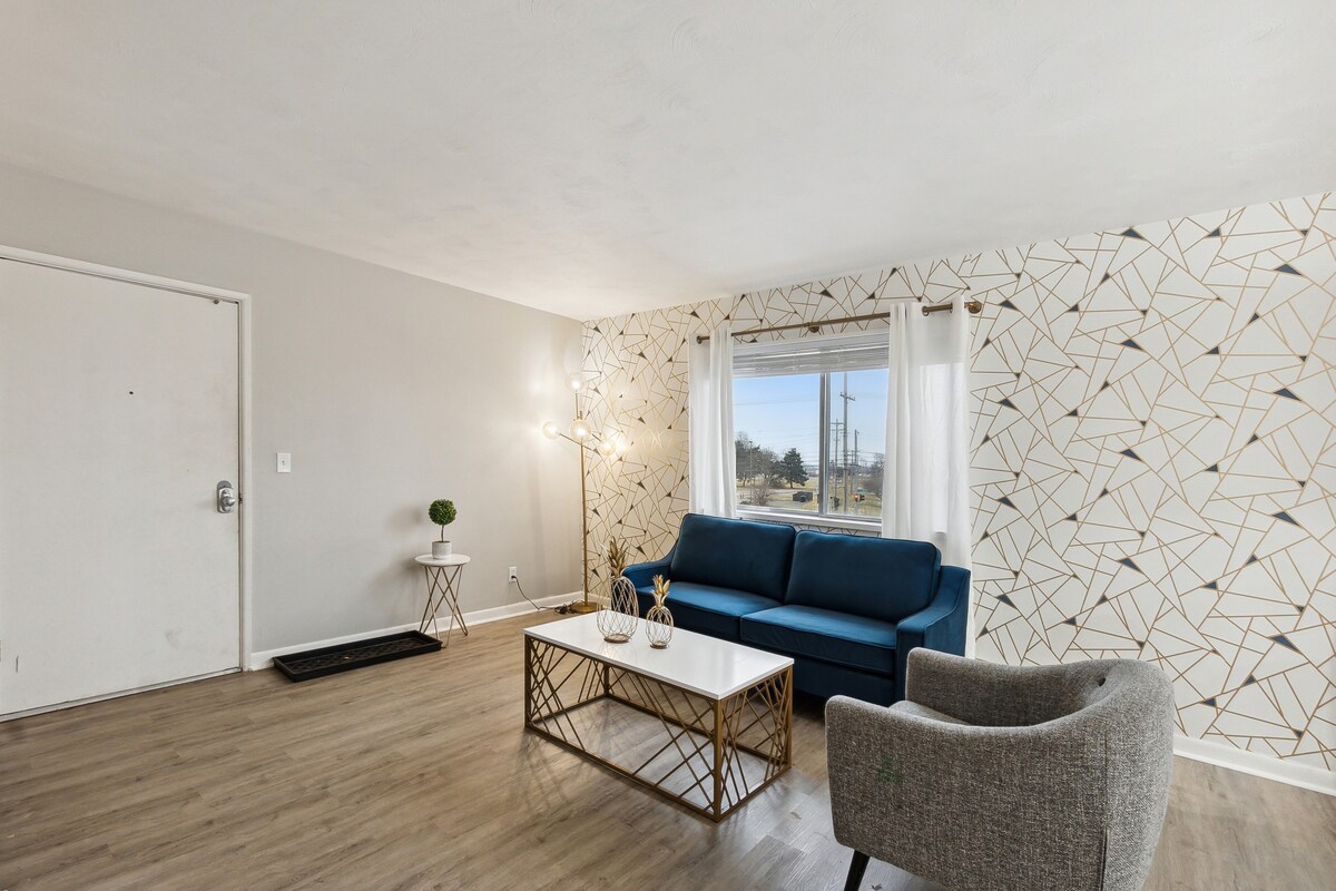 LansingWelcome to The Hangar #11! We didn't think Lansing had enough hip, unique short term rental options, so we've set out to create some! The Fairlane apartment building has been a staple of the Capital Region International Airport for over 40 years. Located in a seasoned industrial pocket of Lansing, a 10-15 minute drive from downtown Lansing and MSU, this unit is located on the third floor of the building. We had a blast setting this one up. We hope you like it :)